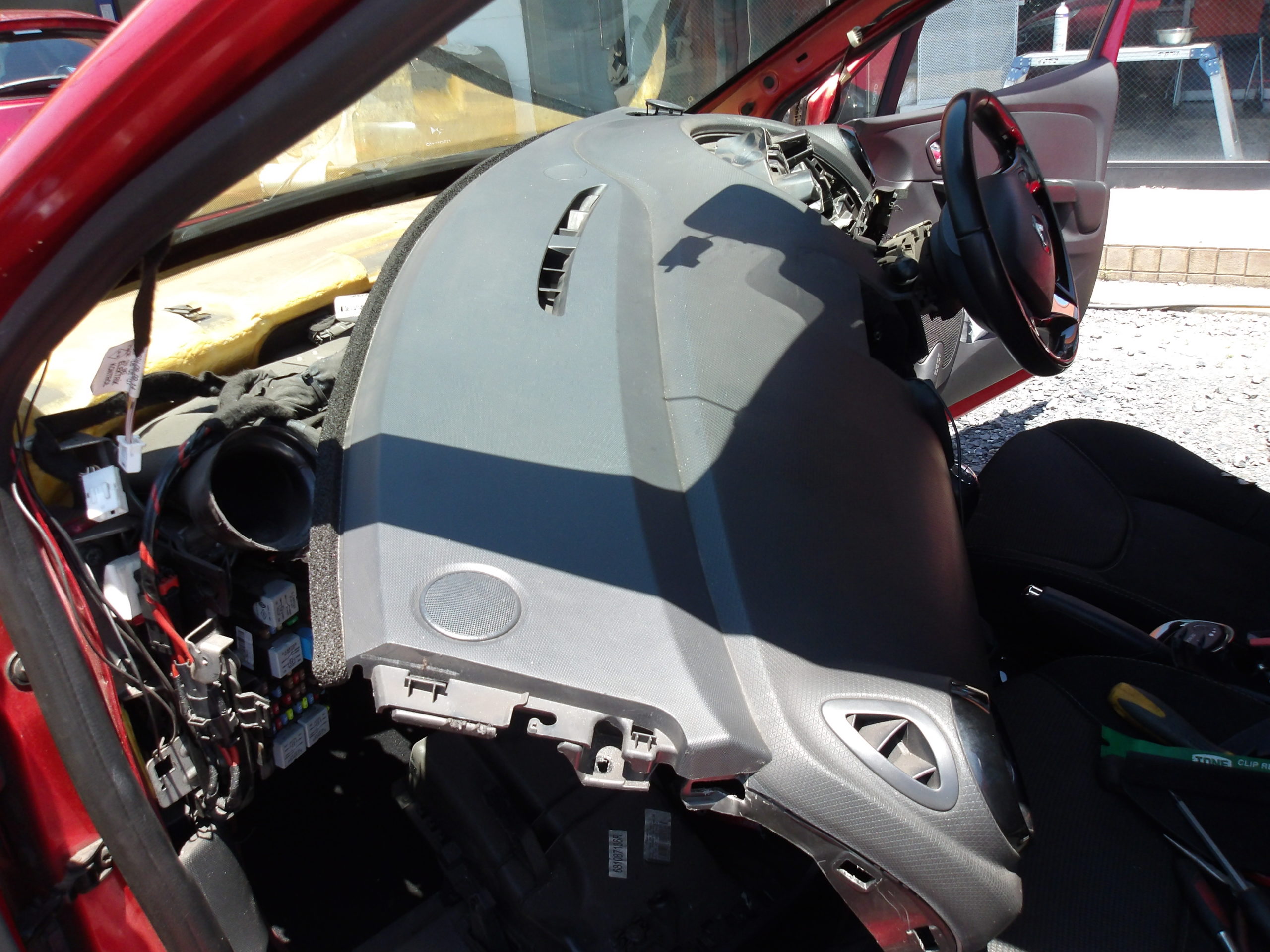 幸いルノーは、ダッシュボードの上半分が外れるので、オーディオパネル廻りはそのままで外れるので、一般的な車種よりは時間がかからず済みます。