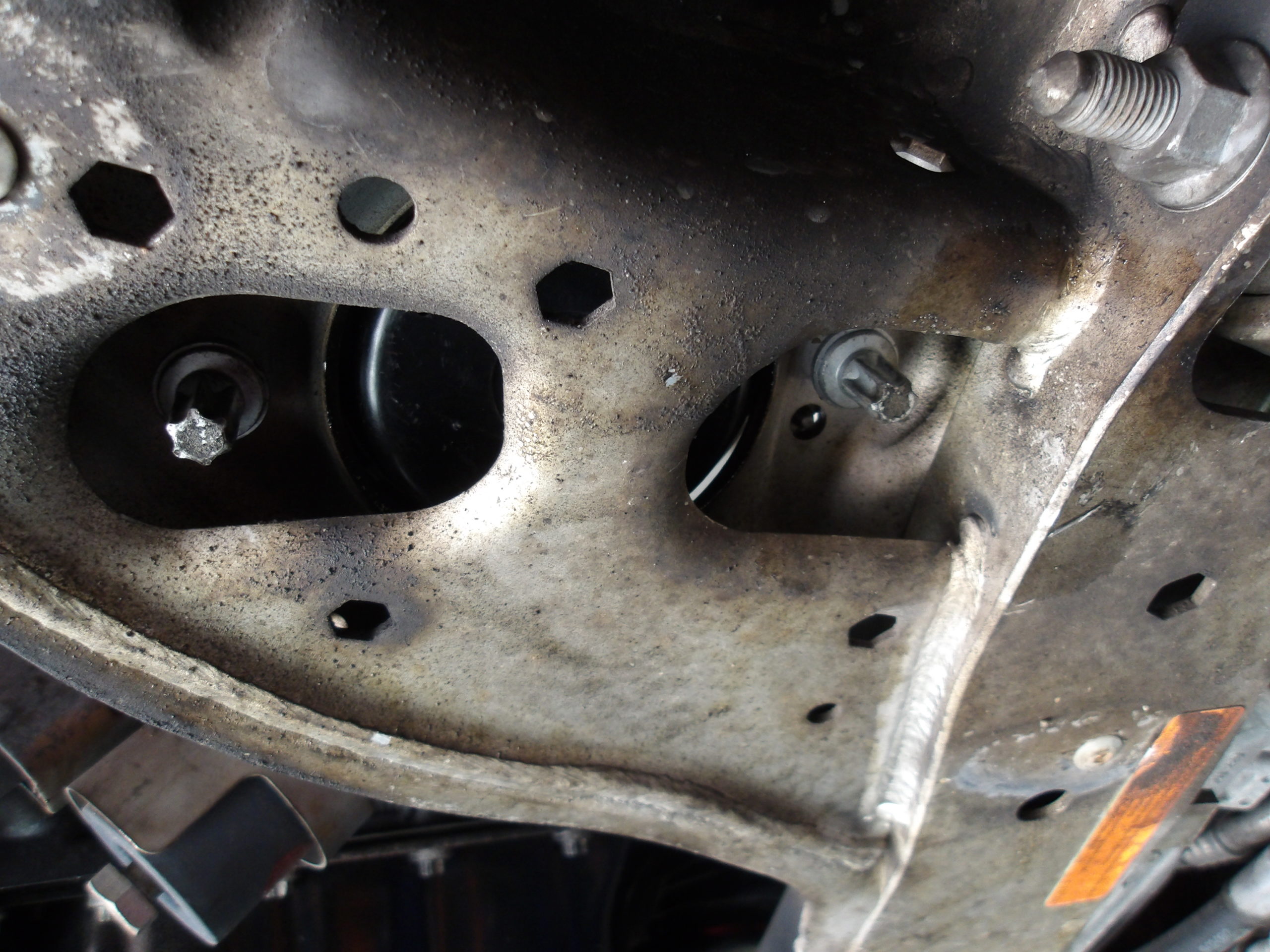 ちょっとわかりづらいですが、クロスメンバーにアルミ製のベースのエンジンマウントが左右対称に取付けられています。