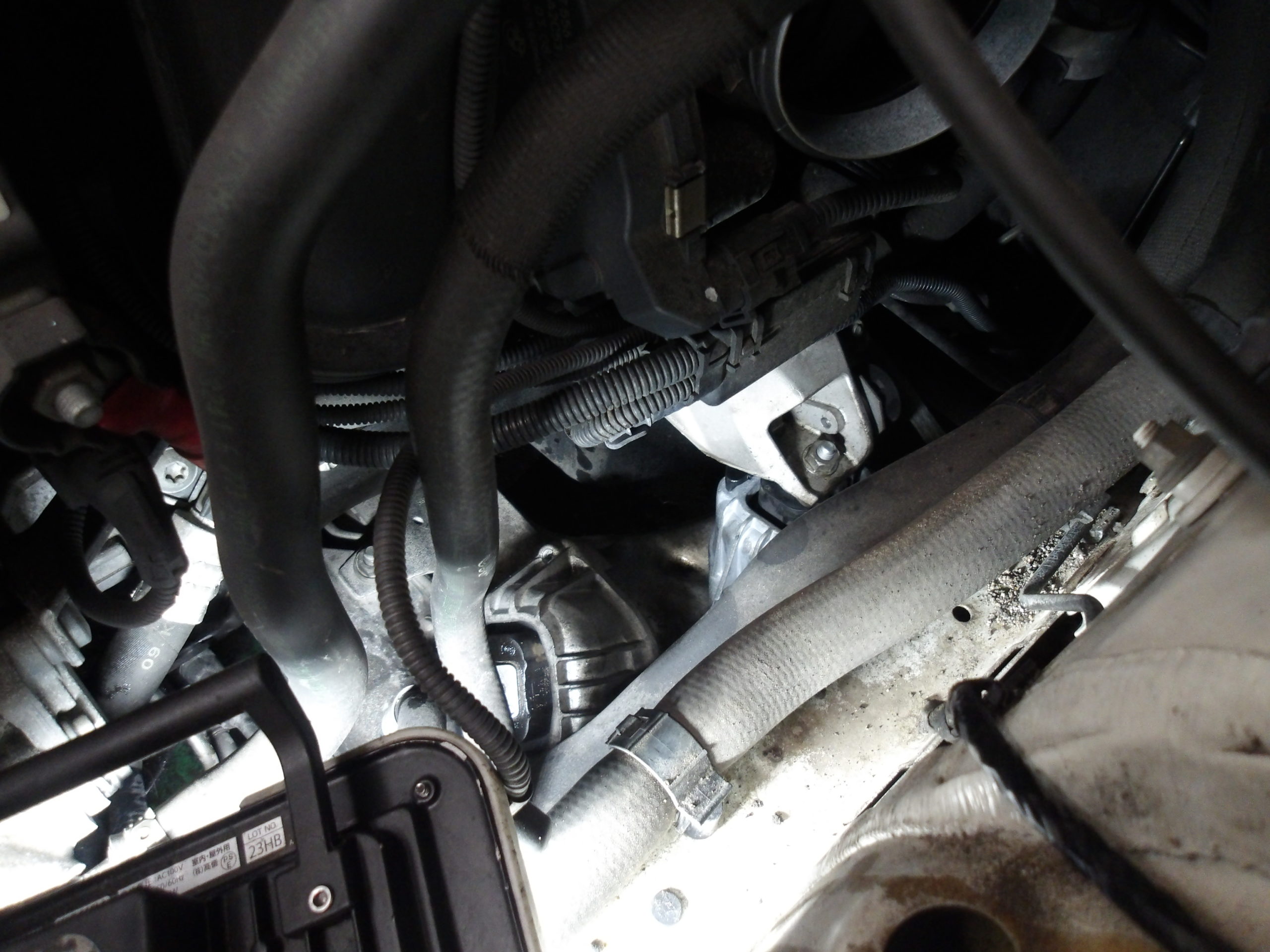 助手席側はエアクリーナーケースを外してボルトにアクセスします。